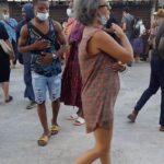 après avoir observer les gestes quotidien des passagers de la barge entre Petite et Grande Terre lors du voyage aller, puis en avoir reproduit lors du voyage retour, l’ensemble de ces gestes sont rejoués sur une dalle en béton du port